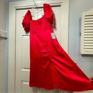 NEW NSR Dress Women’s M Midi Barbiecore Fairycore Short Sleeves Ruched Bodice