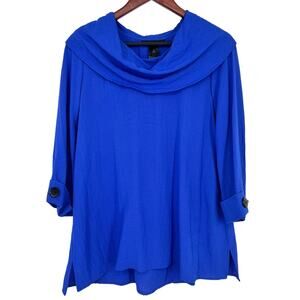 NEW NWOT Ali Miles Small Wearable Art to Wear Blue Artsy Blouse Shirt Top