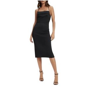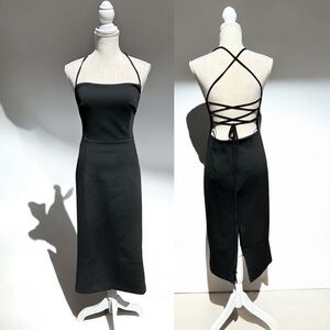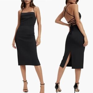 🌻NEW NWOT Good American Black Vacay Lace-Up Scuba Crepe Midi Dress Size 3 Large