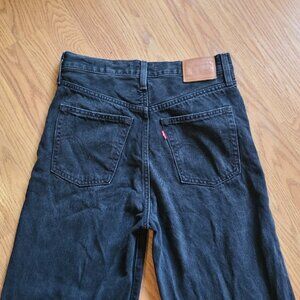 NEW NWOT! LEVI'S RIBCAGE WIDE LEG JEANS 100% COTTON BLACK WASH HIGH RISE