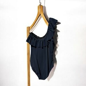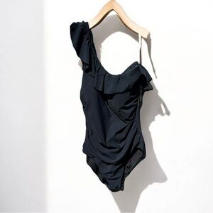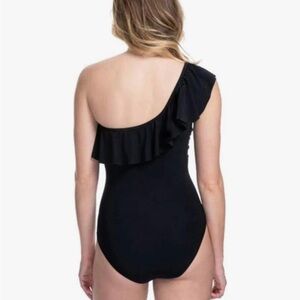 🌻NEW NWOT Profile by Gottex Black Ruffle Shoulder One Piece Swimsuit Size 16