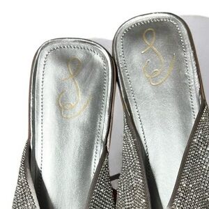 🌻NEW NWOT Sam Edelman Issie Silver Embellished Knotted Slide Sandals Size 8.5