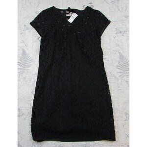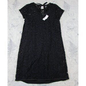NEW NWT $98 ANN TAYLOR LOFT WOMEN'S BLACK LACE Overlay Cap sleeve DRESS SZ 2