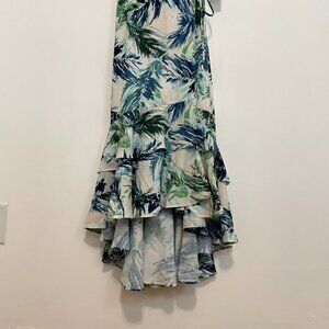 NEW NWT ADELYN RAE Nevina Ruffle Wrap Front Maxi Dress Multi Palm Leaf Tropical