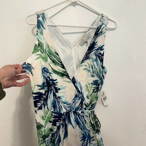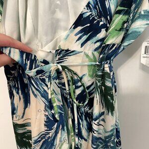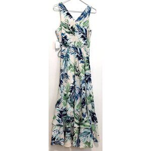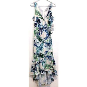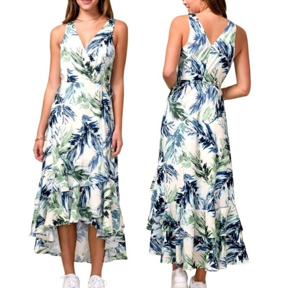 NEW NWT ADELYN RAE Nevina Ruffle Wrap Front Maxi Dress Multi Palm Leaf Tropical