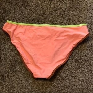 Neon orange with neon yellow / brown trim colorblock bikini swimsuit swimwear swim bottom. Lined. Stretch. Boho bohemian beach tropical spring summer vacay vacation colorful indie festival hippie.