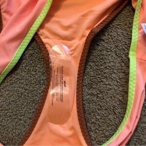 NEW NWT AERIE AMERICAN EAGLE Neon Orange Yellow Brown Colorblock Bikini Bottom L