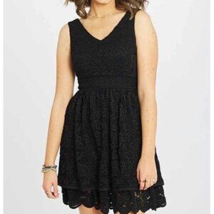 NEW NWT ALTAR'D STATE Solid Black Floral Lace Sleeveless Fit Flare Dress Small S