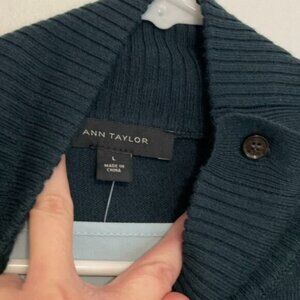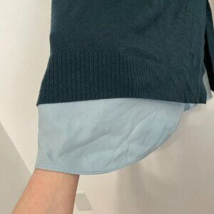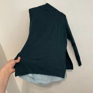 NEW NWT ANN TAYLOR Mixed Media Mock Neck Sweater Teal Green Blue Layered Twofer
