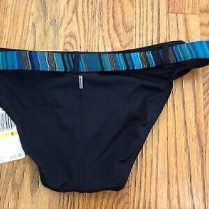 NEW NWT ANNE COLE Black Blue Metallic Copper ? Belted Swim Bikini Bottom Small S