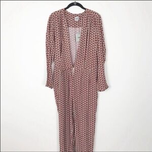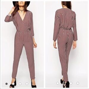 NEW NWT ASOS Retrotile Print long Sleeve Jumpsuit Lightweight Surplice V-neck 8