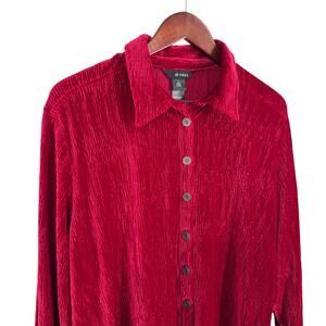 NEW NWT Ali Miles Large Vibrant Red Velvet Wearable Art Christmas Shirt Top