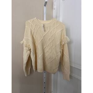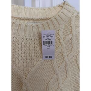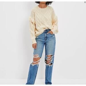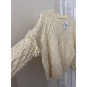 NEW NWT American Eagle Cable Knit Fringe Sleeve Sweater Cream size Small