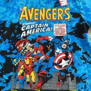 NEW NWT Avengers Medium 10/12 Tie Dyed T-shirt Marvel Isaac Morris Blue READ