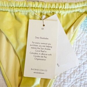 NEW NWT Baobab Lula Yellow Metallic Side Tie Swim Bikini Bottom Medium M