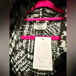 NEW NWT Black Houndstooth Check Wool Blend Hooded Cape Jacket