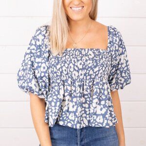 Billowing sleeves extend out from a gathered bust. Pair back with your favorite jeans and wedges for your next day out with the girls. Made in the USA by the brand By Together. 100% polyester. Hand wash in cold water and hang to dry.