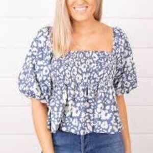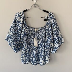 NEW NWT By Together Blue Cream Blouse Square Neckline