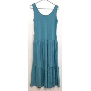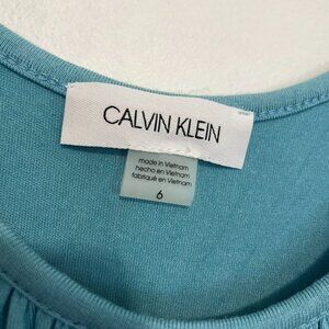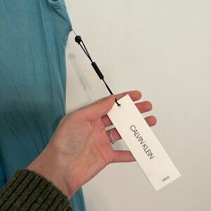 NEW NWT CALVIN KLEIN CK Sleeveless Tiered Dress Solid Aqua Blue Midi Sundress 6
