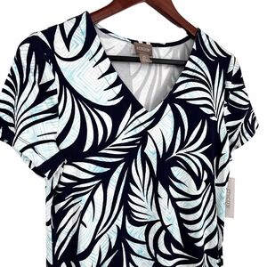 NEW NWT Chicos Sz 0 Small Tribal Tropics Midi Beachy Tropical Dress Aqua Pearl