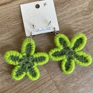 NEW NWT Free People Dahlia Crochet Huggie Hoops Green/Lime