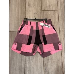 NEW NWT Ganni Check Print Track Shorts EU 38/ US Medium Pink Black
