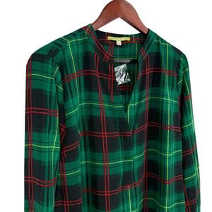 NEW NWT Gianna Bini Large Wearable Art Plaid Christmas Festive Blouse Shirt Top