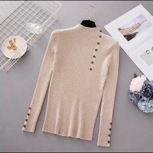 NEW NWT Gorgeous Mock Turtleneck w/ Button Detail. Slimfit but stretchy and comfortable. Button detail on sleeves and down front. Have one left - Apricot/cream one. They are “one size fits most” and will fit a normal size small or medium. As an example, I am a medium for tops (size 8) with a 36” D bust and I own and love this sweater!!