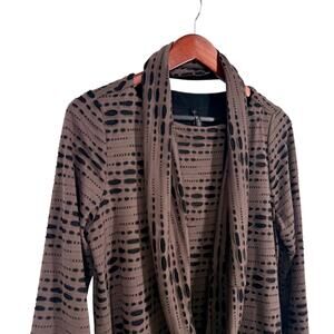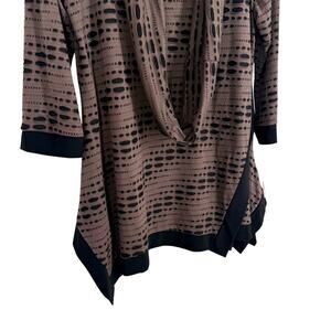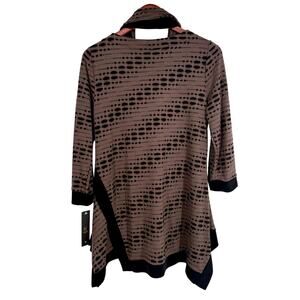 This is a New With Tags IC by Connie K blouse, a wearable piece of art! The unique design features a blend of brown and black tones, perfect for making a statement. It is in new condition with original tags attached.