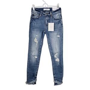 NEW NWT KanCan Destructed Distressed Mid Rise Ankle Skinny Jeans | Size 3/25