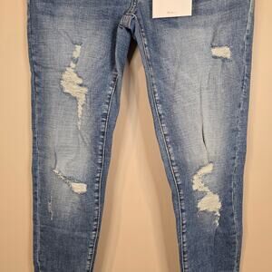 NEW WITH TAGS - women's KanCan destructed/distressed denim "Mid Rise Ankle Skinny" jeans. These do stretch.