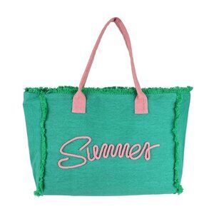 Listed on 3/7/25 -- #beach #Summer #resort #embroidered #oversized #tote #pinkandgreen #handbags #fringe #boho #preppy