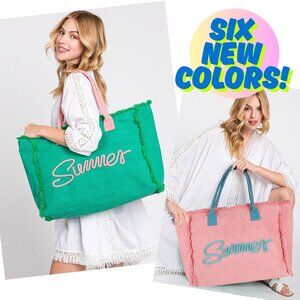 NEW NWT Large SUMMER Hand-Embroidered Boho Fringe Canvas Tote Bag Beach Bag