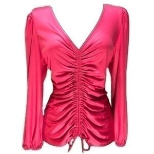 NEW NWT MARC NEW YORK Hot Pink Long Sleeve Ruched Gathered Y2K 00s Blouse Small