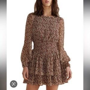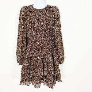 NEW NWT MINKPINK Pascoe Floral Printed Ruffled Mini Dress Cottagecore Prairie Small. Keyhole back. Semi sheer back and sleeves. Tiered skirt