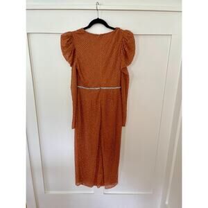 NEW NWT Mac Duggal Beaded Wrap-Over Puff Sleeve Midi Dress 93674 Copper Size 4