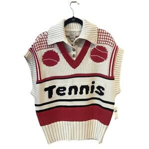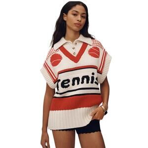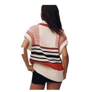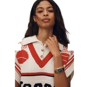 NEW NWT Maeve Tennis Vest Sweater Collared Pullover Cream Red Size S