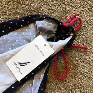 NEW NWT NAUTICA Navy Blue White Red Polka Dot USA Bow Tie Side Bikini BOTTOM 8