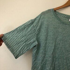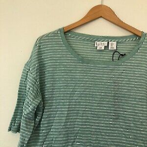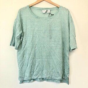 NEW NWT NICOLE MILLER Aqua Green White Stripe 100% Linen Boxy Short Sleeve Top S