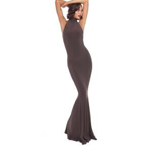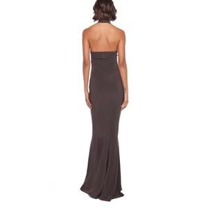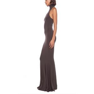 NEW NWT Norma Kamali Halter Turtle Fishtail Gown Chocolate Brown size Small