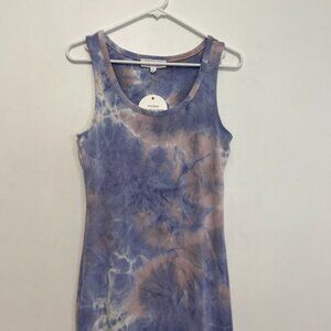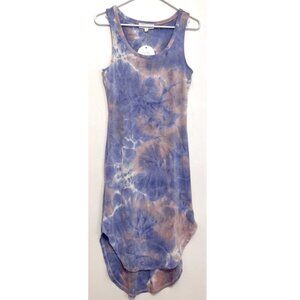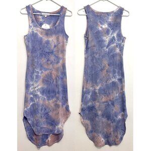 NEW NWT PINK ROSE Periwinkle Blue Mauve Pink Tie Dye Sleeveless Midi Tank Dress