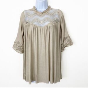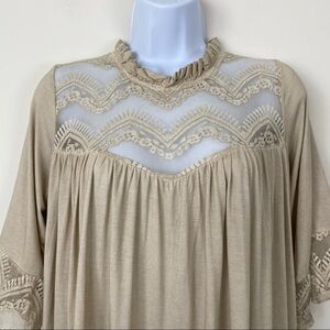 NEW NWT POL Cream Beige Crochet Lace Babydoll Top Blouse Small Oversized Boho