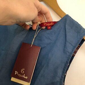 NEW NWT PUSAKA Blue Red Button Back 100% Cotton Sleeveless Boho Tank Top Small S