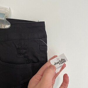 - NEW WITH TAGS Refuge - sold at Charlotte Russe - Hi-Rise Cheeky Jean Shorts (partially ripped tag)