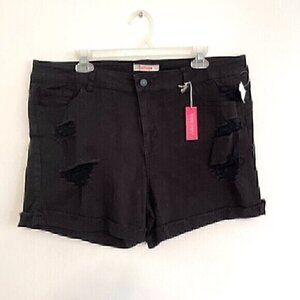NEW NWT REFUGE Hi-Rise Cheeky Jean Shorts Black High Waisted 5" Inseam Cuffed 18