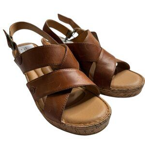 NEW NWT SAMI CORK WEDGE SANDAL BY BORN BRAND. TAN. SIZE WOMEN'S 10M.