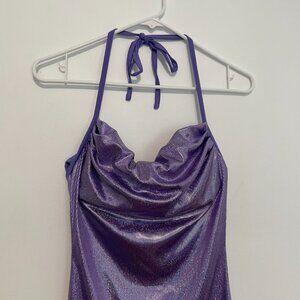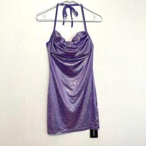 NEW NWT SHEIN SXY Backless Ruched Halter Bodycon Dress Purple Silver Iridescent