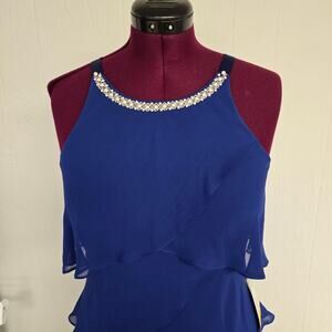 NEW NWT SL Fashions Blue Tiered Chiffon Cocktail Party Dress | Size 8