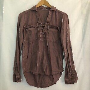 NEW NWT SO JUNIORS Lace Up Utility Top Purple Long Sleeve Cotton Blend Hi-Lo XS