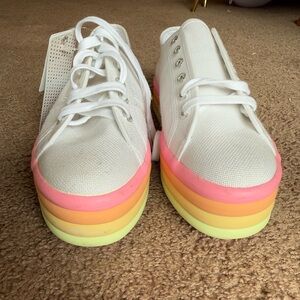 new with tags superga platform sneakers, white with pastel neon soles, size womens 8. amazing condition!